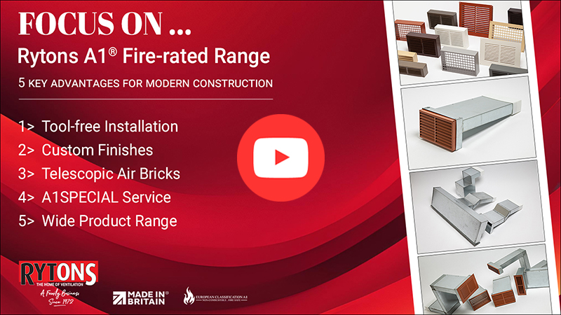 To address these challenges, we are delighted to launch Rytons New A1® Fire-rated Angled Ducting Kits. This bespoke range allows you to specify an exact angle at the design stage, ensuring a precise fit on site. Manufactured from galvanised steel, the kits are non-combustible and fully compliant with Part B fire safety requirements.