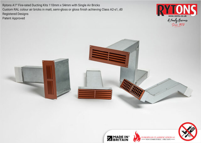 - Rytons A1® Fire-rated Ducting Kits 110mm x 54mm with Single Air Bricks are made from galvanised steel. Galvanised steel is considered fire class A1 without testing, as per European Commission paper 96/603/EC referred to in BS EN 13501-1:2018.