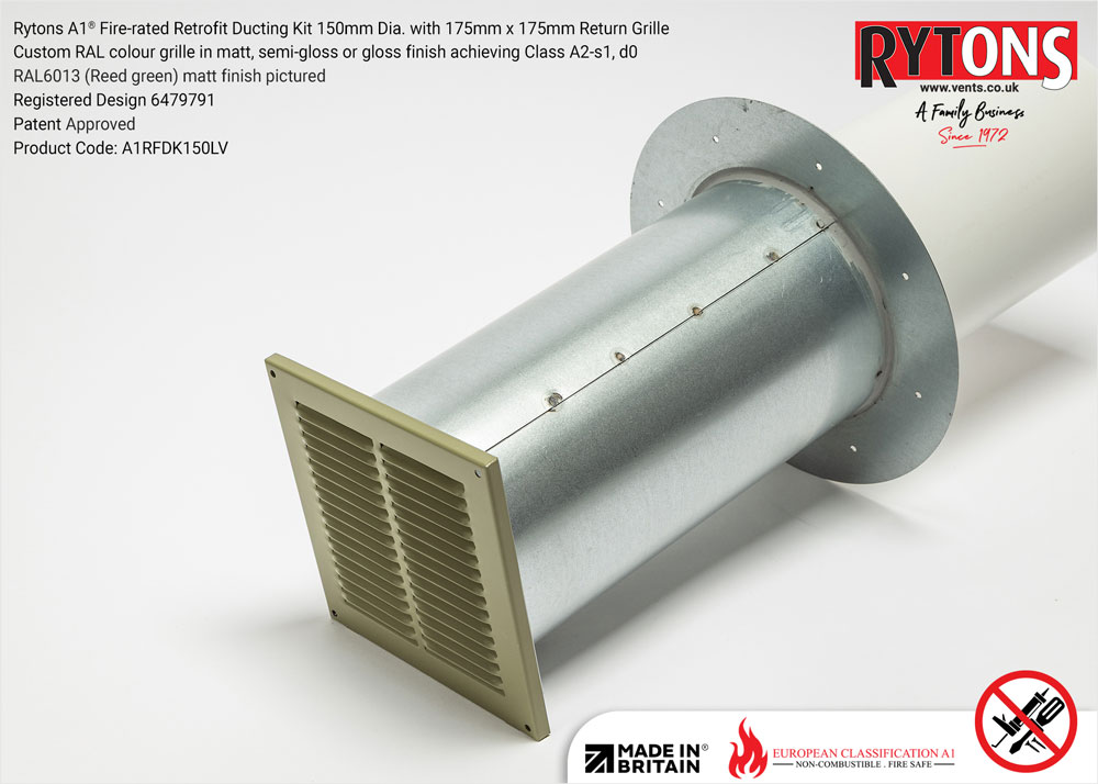 Rytons A1® Fire-rated Retrofit Ducting Kit 150mm Dia. with 175mm x 175mm Return Grille