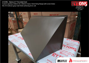 A1COWL: Rytons A1® Fire-rated Cowl with 1200mm x 450mm Opening + 15mm Fixing Flange - RAL7013 (Brown grey)