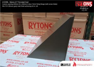 A1COWL: Rytons A1® Fire-rated Cowl with 500mm x 450mm Opening + 15mm Fixing Flange - RAL7013 (Brown grey)