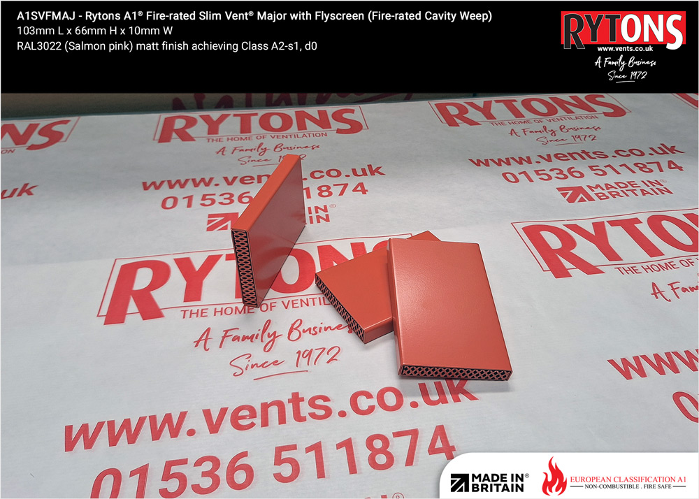 A1SVFMAJ: Rytons A1® Fire-rated Slim Vent® Major with Flyscreen - RAL3022 (Salmon pink)