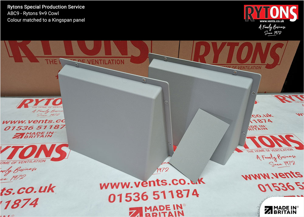 ABC9: Rytons Plastic Cowl 9x9 Colour-matched to a Kingspan Panel