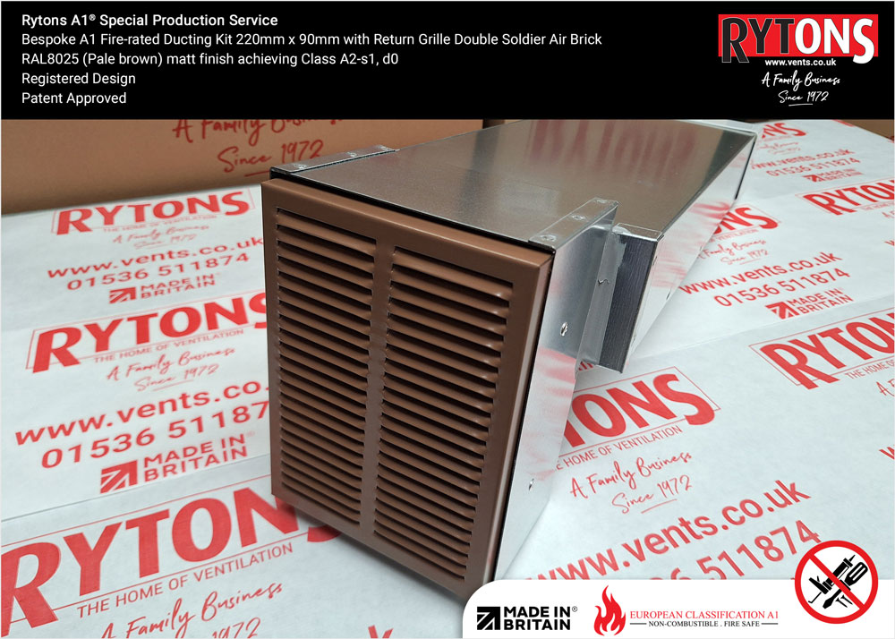 Rytons A1® Special: A1 Fire-rated Ducting Kit 220mm x 90mm with Return Grille Double Soldier Air Brick - RAL8025 (Pale brown)