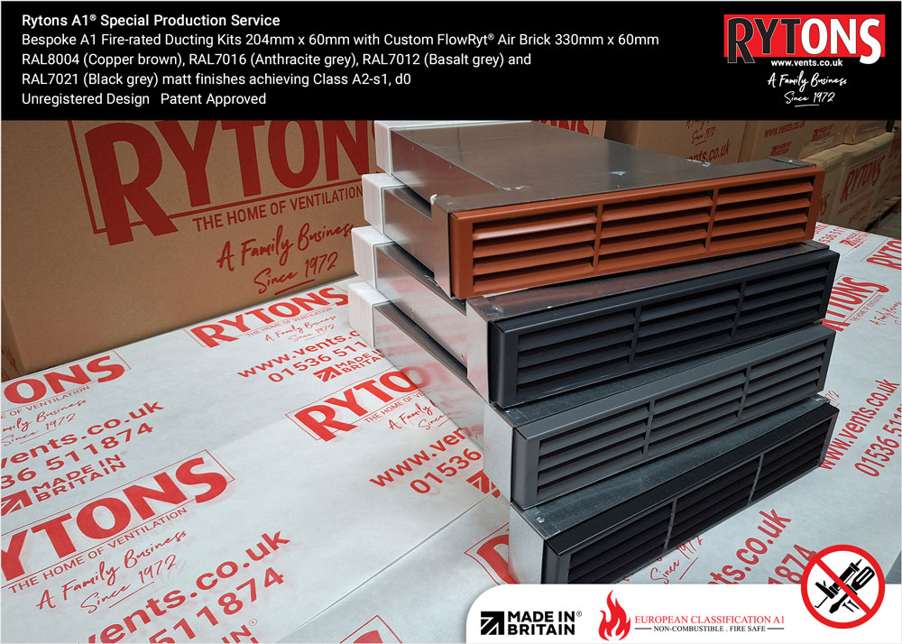 Rytons A1® Special: A1 Fire-rated Ducting Kits 220mm x 90mm with Bespoke FlowRyt® Air Bricks feat. Three Sided Flanges